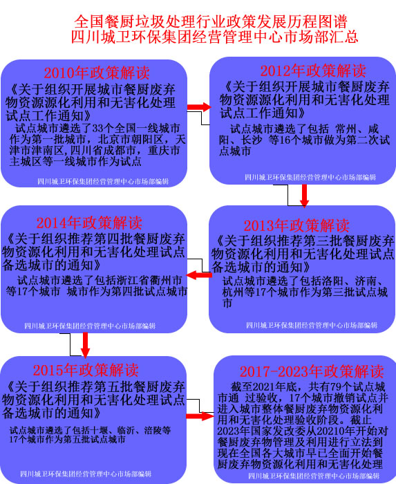 目前,全国有300多个地方出台了餐厨垃圾管理办法,对适用范围、责任主体、收运和处置要求、违规行为处罚等内容作了相关规定。各地通过探索建立部门合作机制,实行统一收运、集中处理等方式,进一步对餐厨垃圾进行规范管理与综合整治,并不断强化监管力度,相关工作取得了明显成效。餐厨垃圾处理行业试点及验收历程如下: